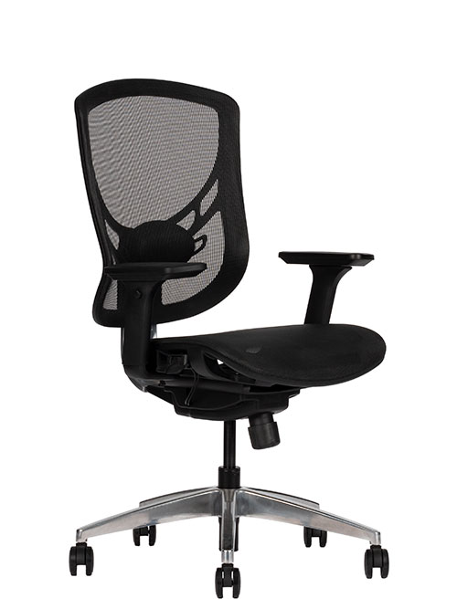 Mecanismo synchro multiposiciones con slide plate y regulación de tensión, 3 posiciones de bloqueo, respaldo con soporte lumbar ajustable, descansa brazos con movimiento 4D, base de 5 puntas en aluminio pulido. Con Smartmesh de importación.